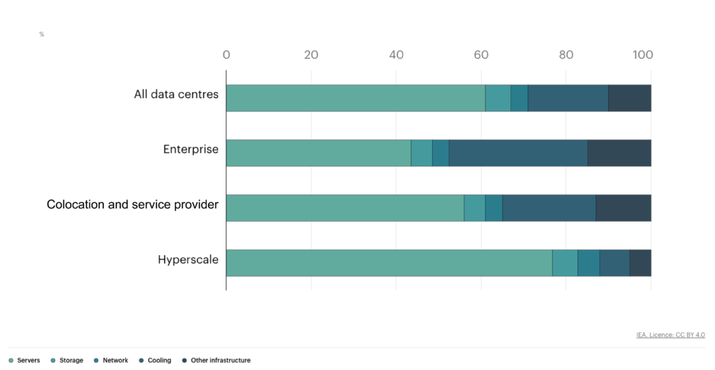International Energy Agency (2025). Share of electricity consumption by data centre and equipment type, 2024. Available at: https://www.iea.org/data-and-statistics/charts/share-of-electricity-consumption-by-data-centre-and-equipment-type-2024