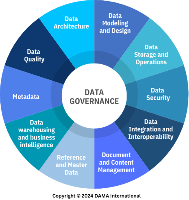 As illustrated by the DAMA-DMBOK Wheel (Figure 2), data governance does not operate in isolation. It functions as the central coordinating capability that aligns architecture, quality, metadata, security, and operational disciplines within a coherent enterprise data management framework.