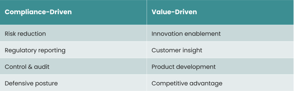 And yet, a structural paradox remains: banks have learned to govern data exceptionally well for compliance and regulatory assurance, but far less effectively for strategic decision-making and value creation.
