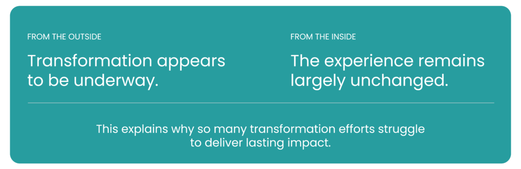 Organizations do not fail to transform because they lack ambition. They fail because they misunderstand what actually drives change.