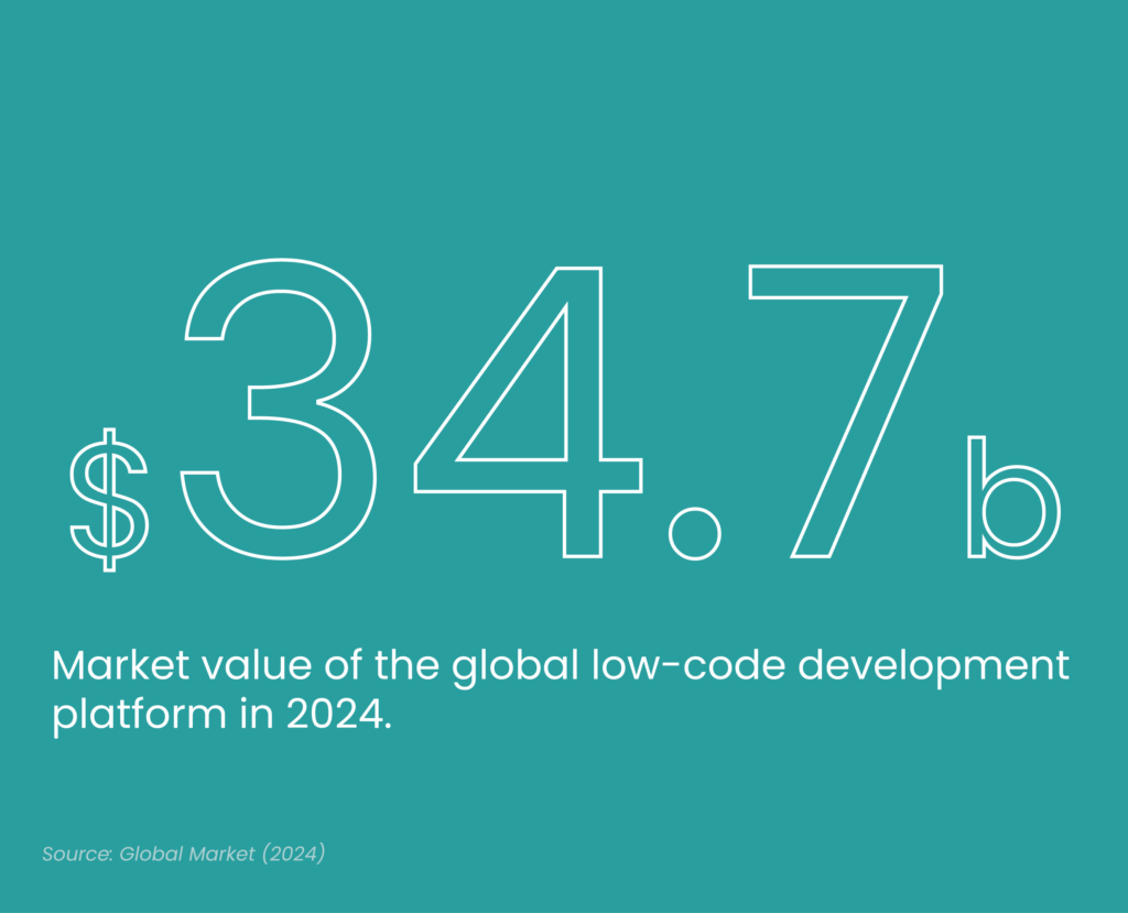 According to Global Market Insights, the global low-code development platform market was valued at USD 34.7 billion in 2024 and is projected to grow at a compound annual growth rate of 11.6 % through 2034, reflecting sustained enterprise demand for accelerated application delivery.